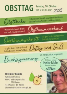 👉 Kommen Sie vorbei, lassen Sie sich inspirieren und erleben Sie einen Obsttag voller Genuss, Wissen und Gartenfreude.