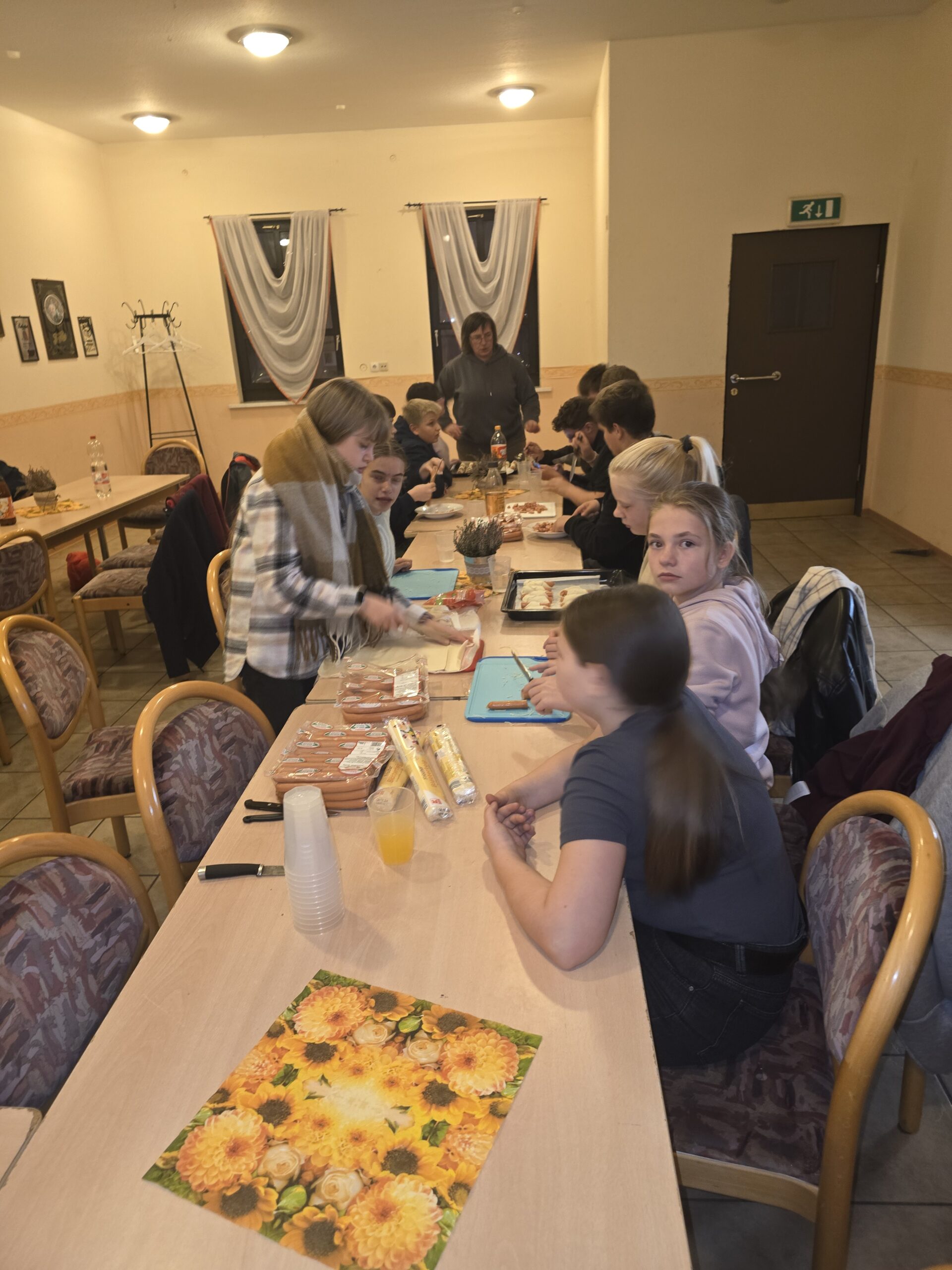 🍽️ Taste & Talk im Mehrgenerationenhaus Ufhoven 🥣Am vergangenen Freitag trafen sich wieder 15  Mädels und Jungs der Gruppe Taste & Talk im Mehrgenerationenhaus Ufhoven, um gemeinsam zu kochen, zu essen und zu plaudern.Es war ein richtig gelungener Abend mit tollen Gesprächen, leckerem Essen und guter Stimmung. Auf dem Menü standen Kartoffelsuppe, Würstchen im Schlafrock und gefüllte Eierkuchen – ein Fest für alle Genießer! 😋Auch die Ufhover Dorfjugend fand als Gäste den Weg zu uns und konnte dank der Fülle an Essen noch etwas abbekommen. 💛Ein rundum schöner Abend – wir freuen uns schon jetzt auf das nächste Treffen am 28. November! 🎉Danke an Kirmesverein Ufhoven fürs spenden der Würstchen. #TasteAndTalk #MehrgenerationenhausUfhoven #UfhoverDorfjugend #Gemeinschaft #KochenMitFreunden #Ufhoven #Lecker